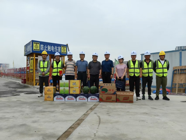 劉勐一行來到航空工業(yè)自控所錦業(yè)園區(qū)三期建設(shè)項(xiàng)目施工現(xiàn)場,詳細(xì)了解并查看了現(xiàn)場管理情況及工程施工進(jìn)度,親切慰問了奮戰(zhàn)一線的工作人員,為他們送上防暑降溫慰問品和慰問金,并對夏季高溫及汛期安全作業(yè)、人員管理等提出了具體要求。